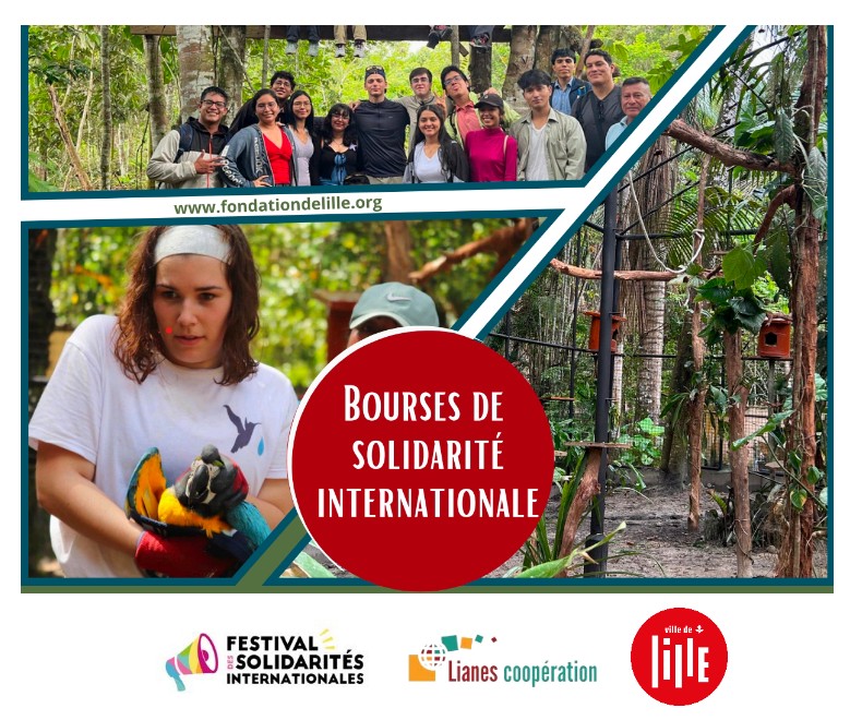 Dans le cadre du Festival des Solidarités Internationales, qui a lieu du 19 au 23 novembre sur le thème « Une énergie collective pour un monde durable », la Fondation de Lille et la Ville de Lille lance une quatrième édition des bourses de solidarité internationale afin d’impulser une dynamique visant à encourager les jeunes résidant à Lille, Hellemmes ou Lomme, de 18 à 30 ans OU les étudiants et étudiantes inscrits à l'Université de Lille, l'Université Catholique de Lille ou dans une grande école de Lille, à s'engager à l'international en tant qu'ambassadeurs et ambassadrices de la solidarité internationale.