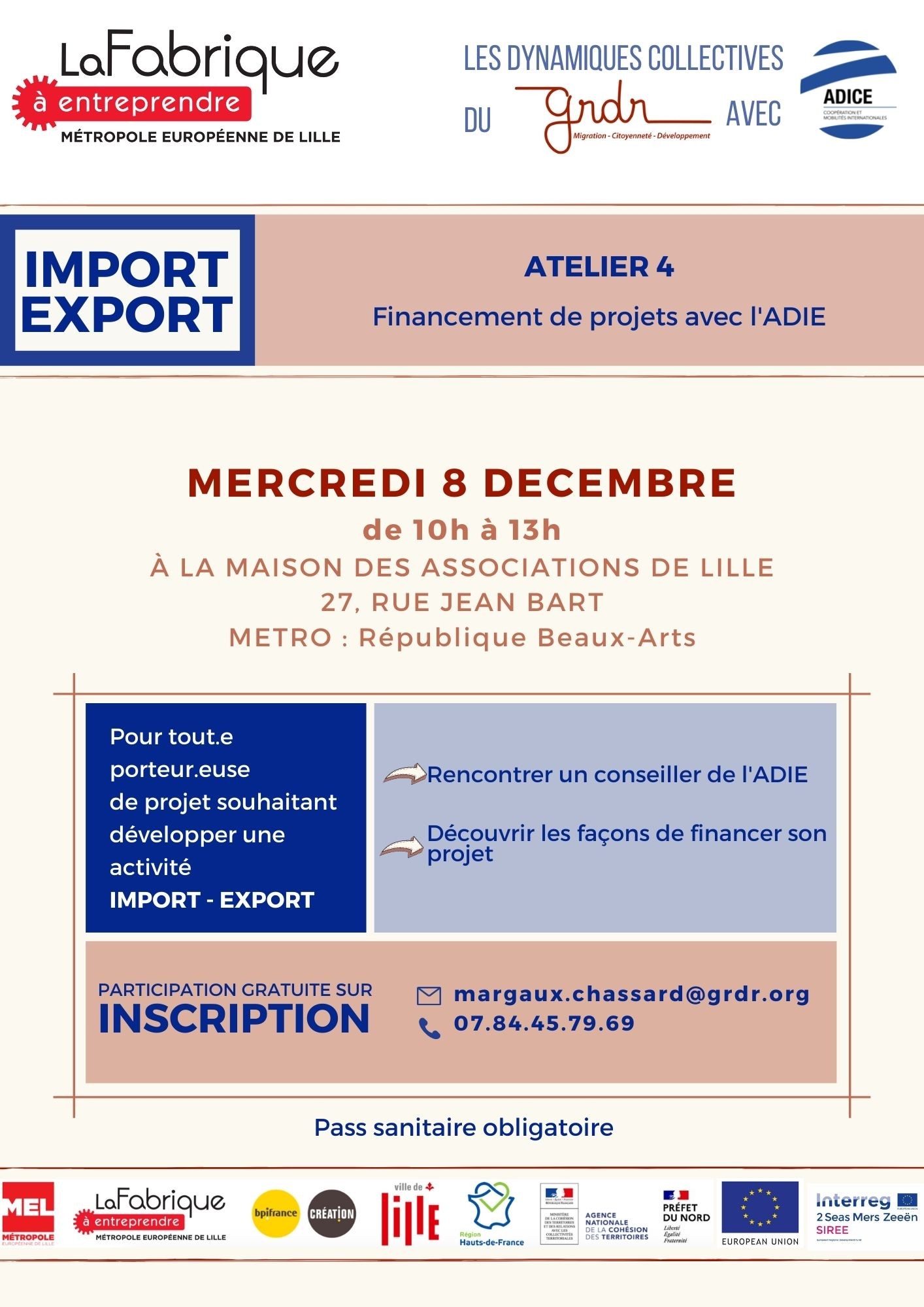 Nouvelle rencontre du club “Import / Export” sur la thématique du financement de projets . Atelier de 3h avec l’intervention d’un conseiller de l’ADIE.