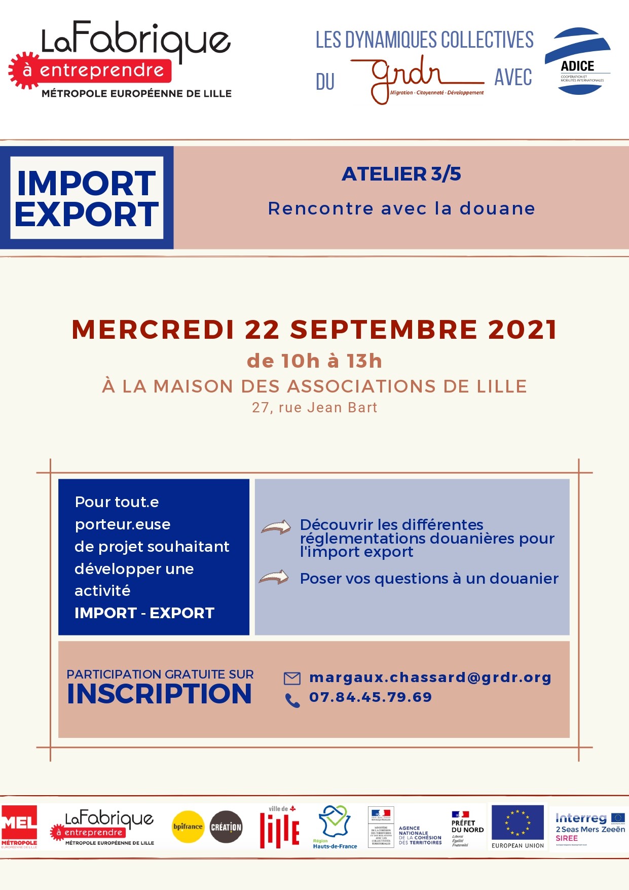 Nouvelle rencontre du club “Import / Export” sur la thématique de la douane. Atelier de 3h avec l’intervention d’un professionnel sur le sujet et un temps de questions / réponses dédié aux porteurs de projets.