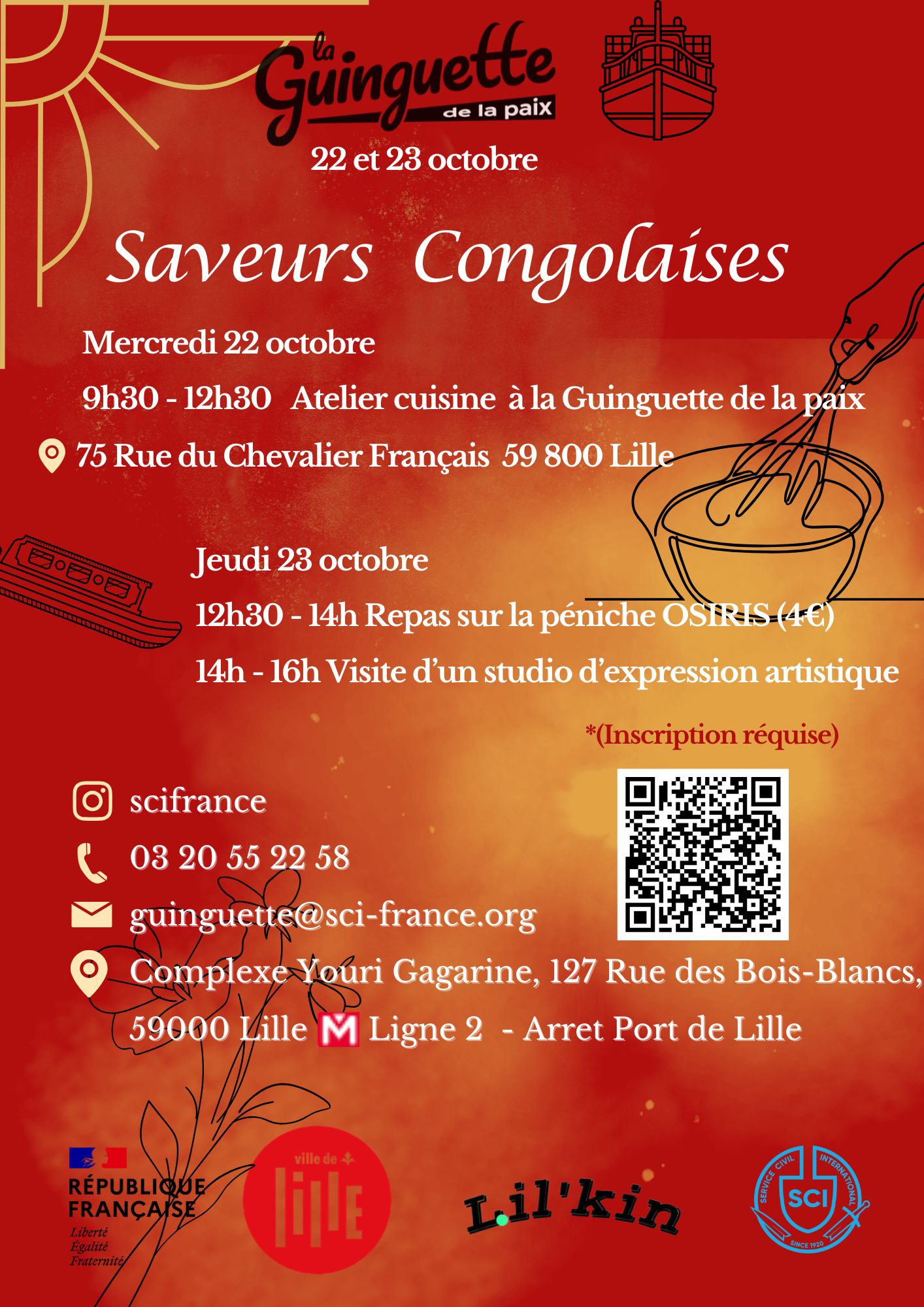 L’association vous invite à une nouvelle Guinguette de la Paix les 22 et 23 octobre 2025, en partenariat avec LIN’KIN, pour un moment de découverte et de convivialité autour de la cuisine congolaise