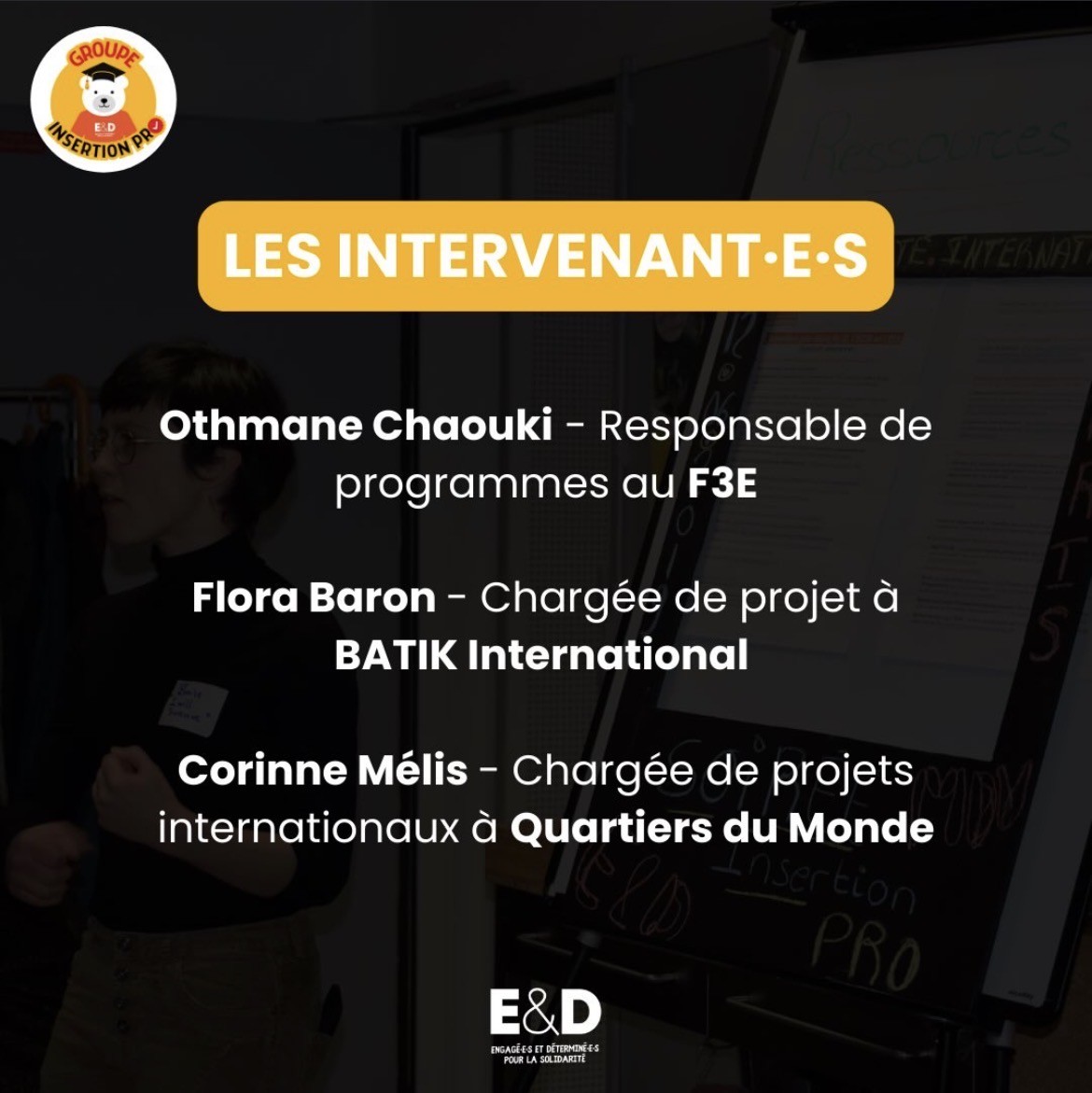 💬 Un temps d'échange avec des professionnel·le·s du secteur autour de leurs parcours, de leurs métiers et des enjeux liés au genre dans la solidarité internationale.