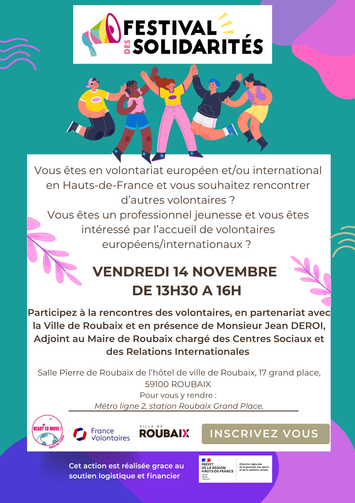 Venez participer à la rencontre du 14 novembre 2025 des volontaires internationaux et européens de la région Hauts-De-France à Lille, organisée par Ready to Move ! et France Volontaires.