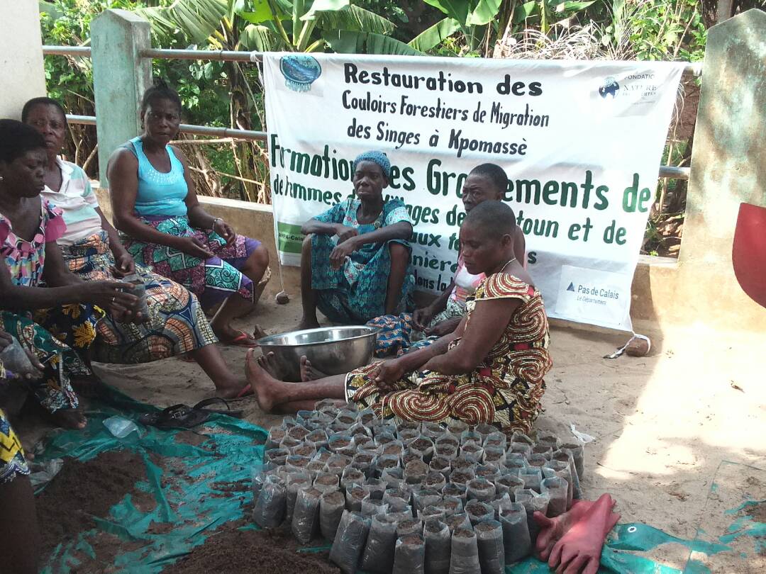 Mais, l’action directe de reboisement des couloirs forestiers naturels, détruits par le passé, est une priorité et elle assure quelques revenus à un groupement de femmes qui assurent les pépinières. CRIPADD estime que cette action permettrait de sauver les singes car leur population se réduit selon les observations des villageois.