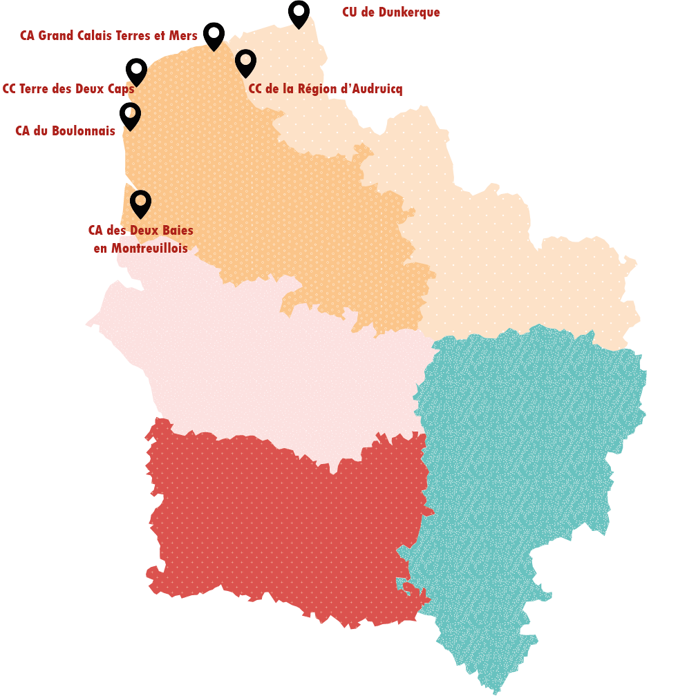Le projet se déroule sur le littoral du Nord et du Pas‑de‑Calais, en partenariat avec les intercommunalités suivantes :